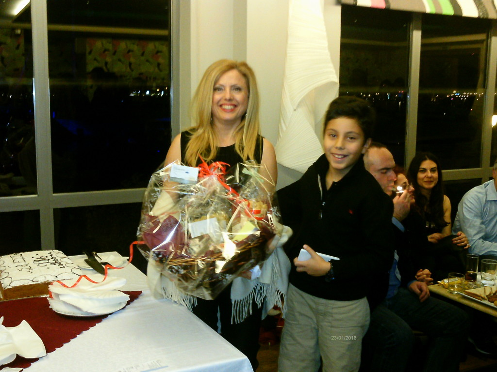 Με συμμετοχή μεγάλου αριθμού αποφοίτων και σε γιορταστική ατμόσφαιρα έγινε και φέτος, το βράδυ του Σαββάτου 23 Ιανουαρίου, η κοπή της βασιλόπιτας του Συνδέσμου στο κέντρο “Breeze” της μαρίνας του Φλοίσβου. Στη φετινή γιορτή ο Σύνδεσμος τίμησε δυο απόφοιτους του 1984, το ζωγράφο Ανδρέα Κοντέλλη για το εικαστικό του έργο και τον καθηγητή της Αρχιτεκτονικής Σχολής του ΕΜΠ Σταύρο Γυφτόπουλο για την εθελοντική εκπόνηση της προμελέτης της επέκτασης και αναβάθμισης του κτηρίου της Ευαγγελικής Σχολής. Την απονομή των τιμητικών πλακετών στους δυο απόφοιτους έκανε σε συγκινησιακό κλίμα η επί 30ετία (1971-2001) καθηγήτρια εικαστικών της Σχολής κα Ρένα Ανούση. Την πίτα έκοψε ο απόφοιτος του 1973 Δημήτρης Γεωργακιώδης ως ο αρχαιότερος απόφοιτος της Προτύπου Ευαγγελικής Σχολής που ήταν παρών. Τα δυο φλουριά από τις πίτες κέρδισαν η Ντορίνα Ρηγοπούλου (αποφοιτη του 1988) και ο Χαράλαμπος Ποριάζης (απόφοιτος του 2000) που μάλιστα το είχε κερδίσει και πρόπερσι!!! Στα επίσης απίθανα της βραδιάς ήταν ο λαχνός που τραβηξε ο μικρός Βασίλης Φέγγος τον οποίο είχε η μητέρα του και η οποία κέρδισε έτσι το καλάθι των δώρων της κλήρωσης, που ευγενικά προσέφερε ο απόφοιτος Δημήτρης Καρράς από το κατάστημα τροφίμων του “Εδέσματα”, Προσκ. Αϊδινίου 10, Ν. Σμύρνη. Το τσουχτερό κρύο, τελικά, δε στάθηκε εμπόδιο και η γιορτή κράτησε μέχρι τις πρώτες πρωινές ώρες σε ζεστή ατμόσφαιρα. Και του χρόνου!